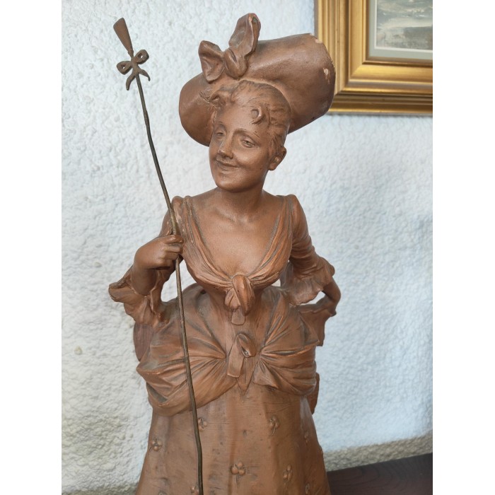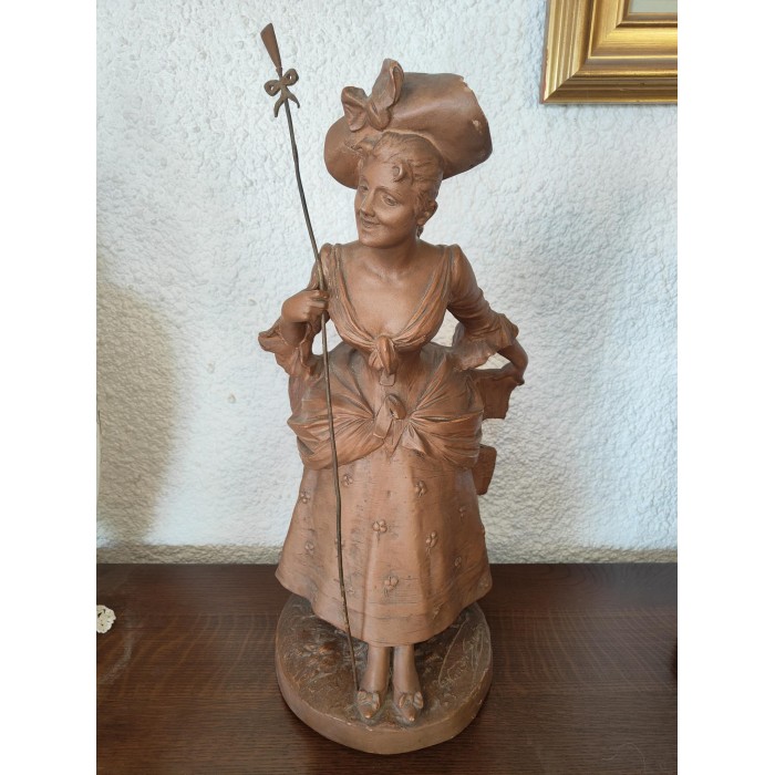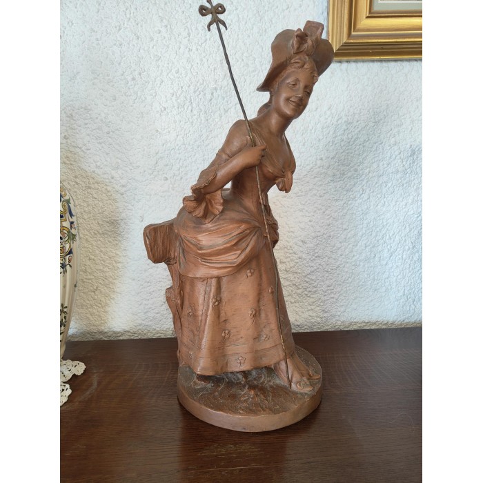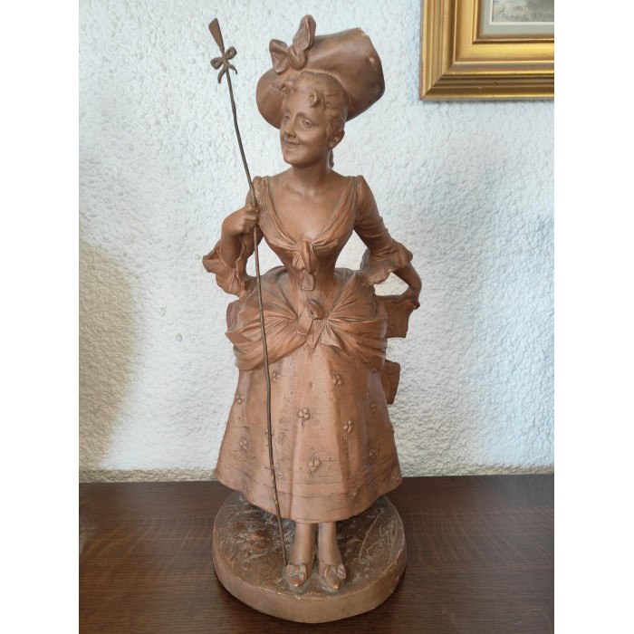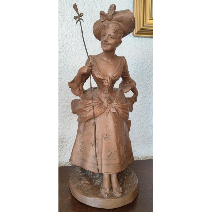 Magnifique Bergère par Georges Van Der Straeten (1856-1941) en Terre cuite