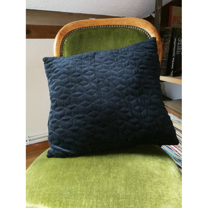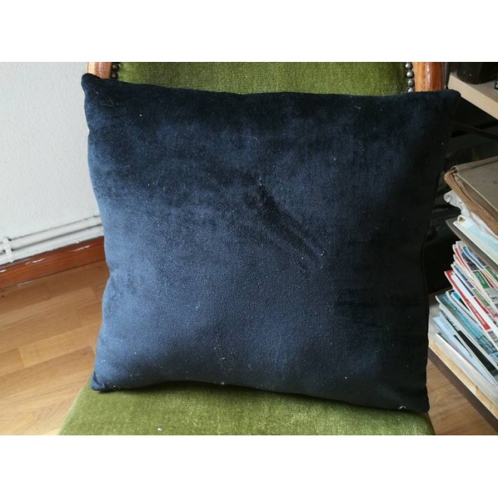 En velours noir avec un décor de motifs géométriques sur le devant et uni sur le derrière
