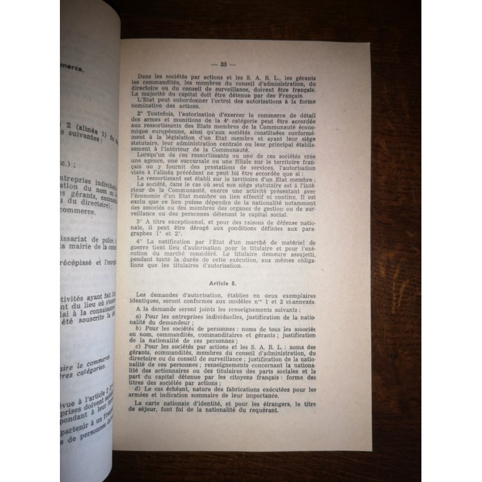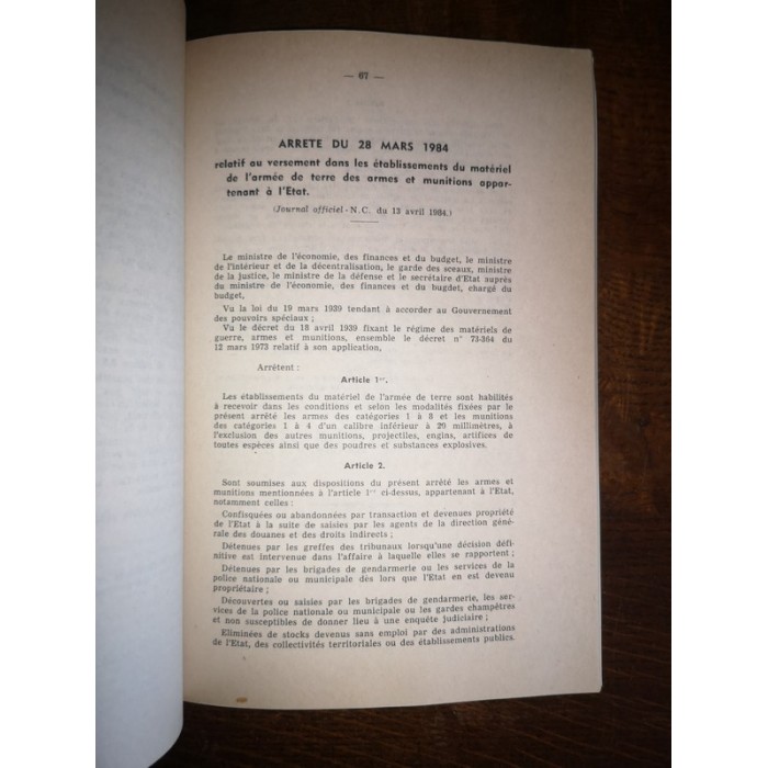 Il s'agit de la législation, des articles de lois, les catégories d'Armes, les déclarations, ordonnances, décrets, arrêtés, articles, instructions, obligations