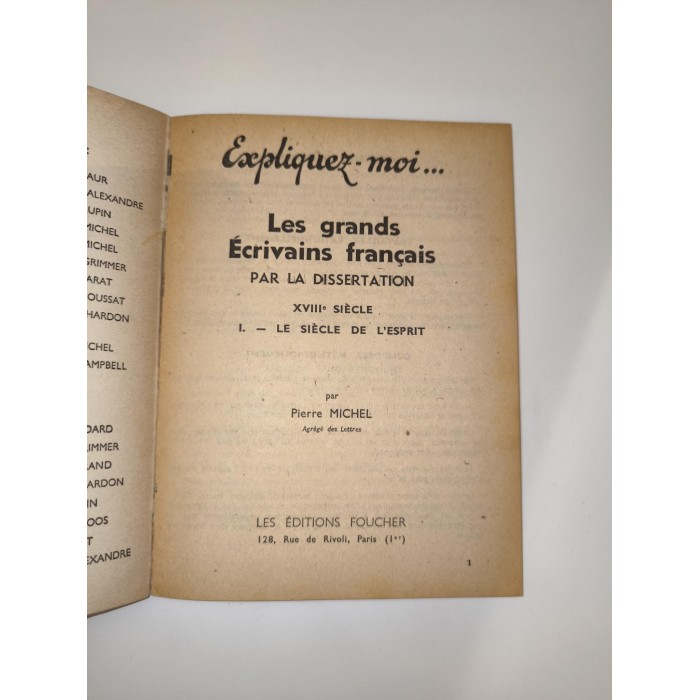 Expliquez Moi Les grands écrivains Français par la dissertation XVIIIème Siècle Le Siècle de l'Esprit par pierre Michel