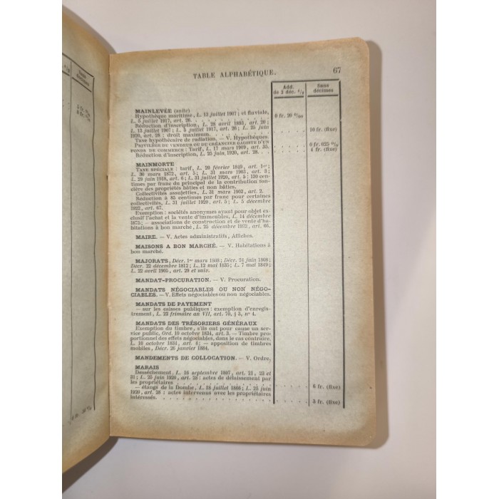 Des Droits d'Hypothèque, des droits de Greffe, de l'Impôt sur le Revenu des Valeurs Mobilières....