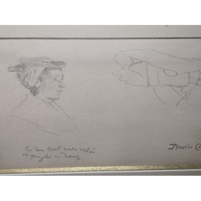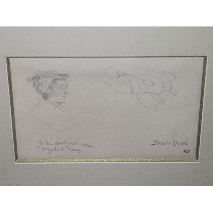 Dessin à la mine de plomb avec cachet d'Atelier par Maurice François Auguste Courant