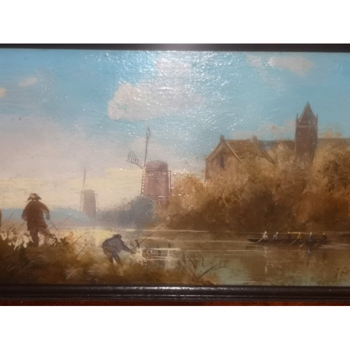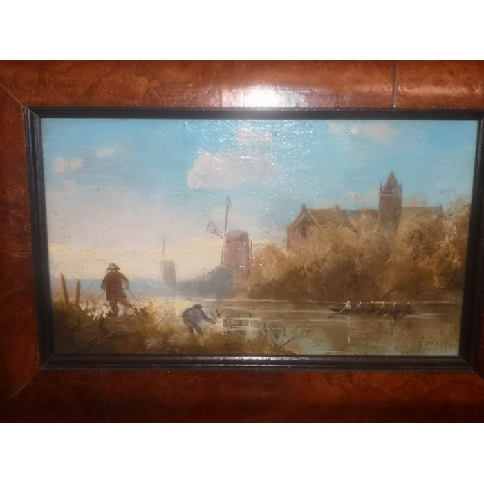 Huile sur panneau ancienne représentant un paysage du Nord Marine signée en BAS à droite J. Sika