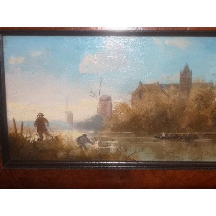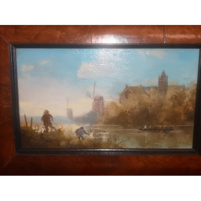 Huile sur panneau ancienne représentant un paysage du Nord signée en BAS à droite J. Sika