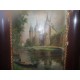 Huile sur cuivre signée en BAS à droite par J.R. Ruggieri Paysage d'un château au bord d'un lac