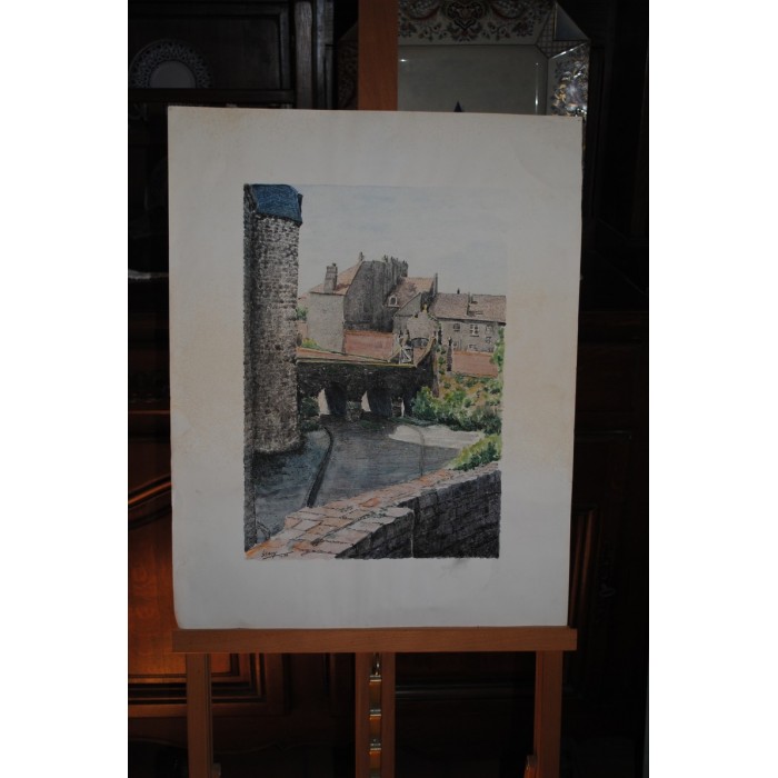 Encre de chine aquarellée Le château d'Aumont de Boulogne-sur-mer par jean Leroy en 12/1978