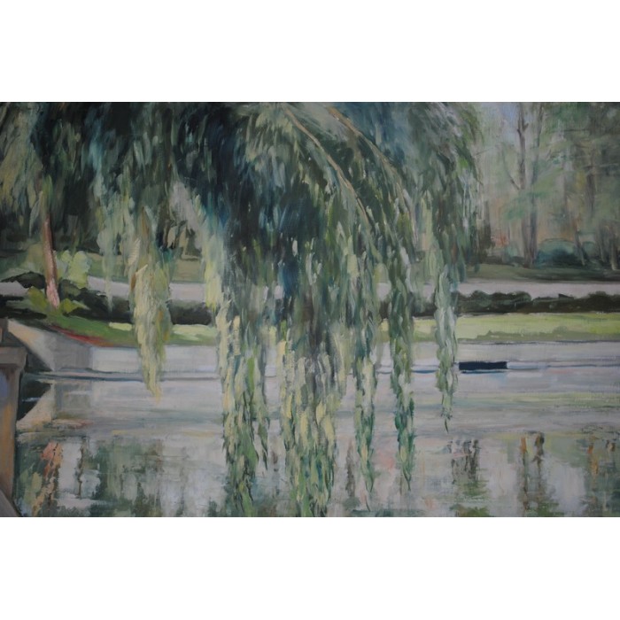 Huile sur toile par Demarty Daté 1990 Intitulée Saule pleureur étang Colbert dans les Hauts de seine au Plessis-Robinson