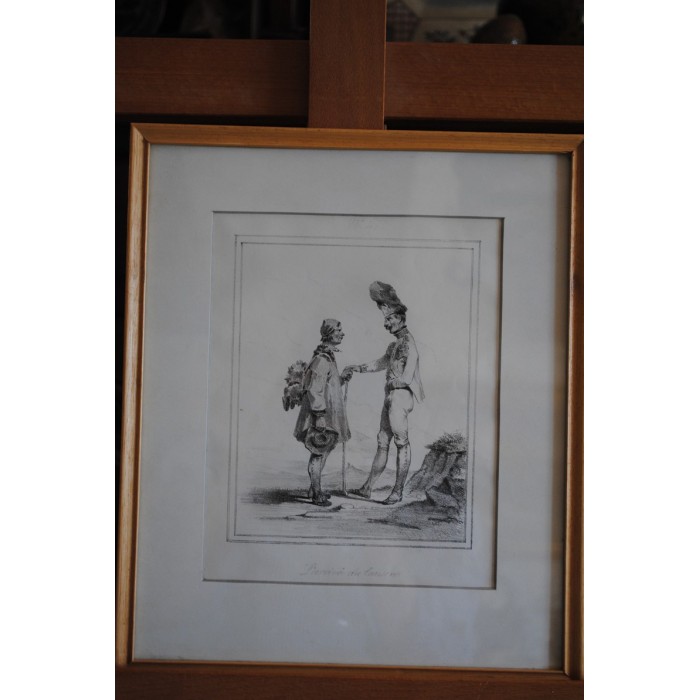 Estampe par nicolas-Toussaint Charlet (1792-1895) L'arrivée du conscrit Planche N°4 de la suite Fantaisies
