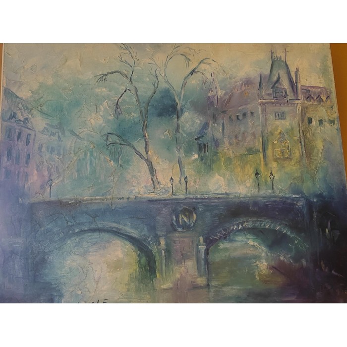 Il s'agit d'1 peinture représentant 1 Paysage féérique, il s'agit d'1 pont de Paris