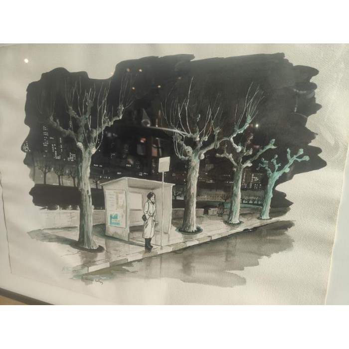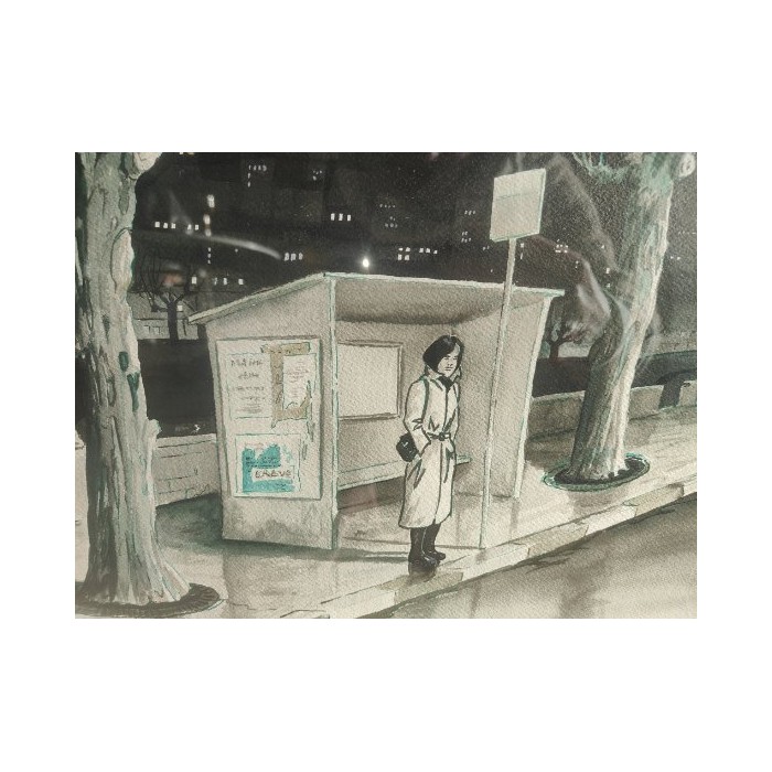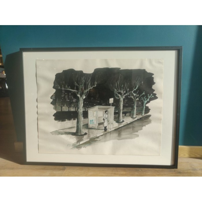 Très belle représentation d'1 femme attendant le dernier Trolley
